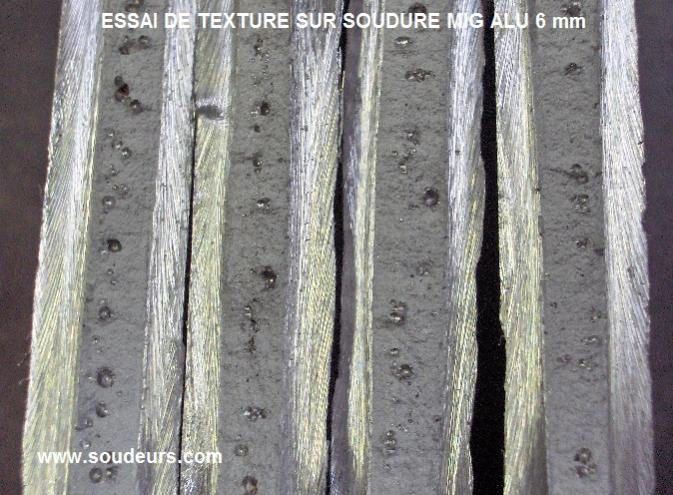 Il faut préciser que c'est un essai de texture réalisé sur une soudure MIG bout à bout en aluminium 5083 en 6 mm soudée au plafond (PE)