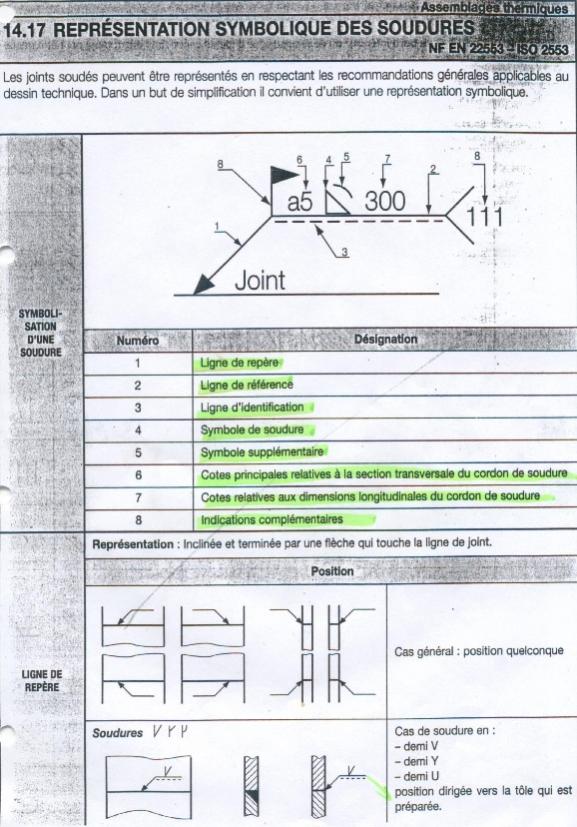 Voici une représentation symbolique des soudures ISO 2553 NF EN 22553