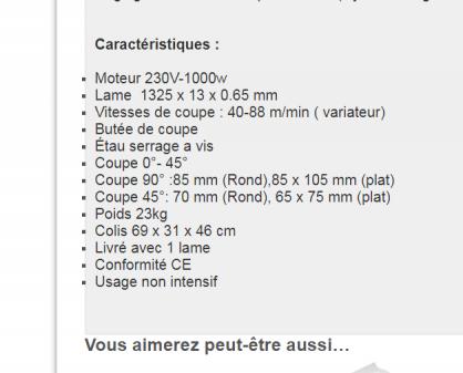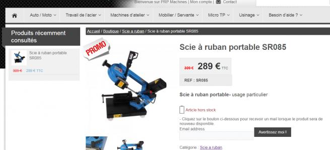 ricou26,autant pour moi je n'ais fais que survoler l'annonce et je n'ais pas regarder les specs.Regarde celle la c'est la meme cette fois c'est sur...Scie a ruban portable SR085 - PRP Machinesle stock est contemment renouveler,suffit d'attendre