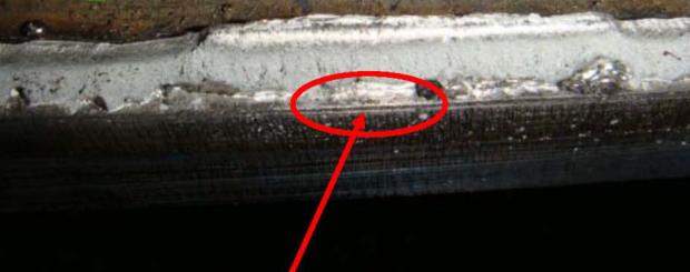 on ne sait pas trop ce qui a été pété. Mais un trait bien net comme cela ressemble fort à un manque de fusion de la racine et pas qu'un peu!!!! D'où l'intérêt des contrôles destructifs, faire une macro d'une section c'est jouer à la loterie, cela ne présume pas de la qualité globale d'un cordon tant pour la granularité, les soufflures et les collages et les manques de fusion en racine