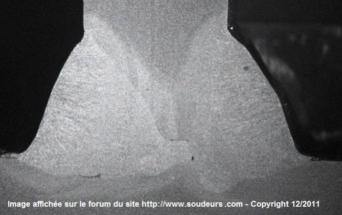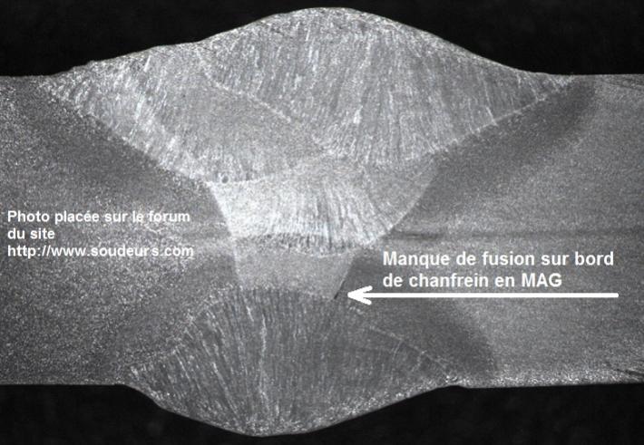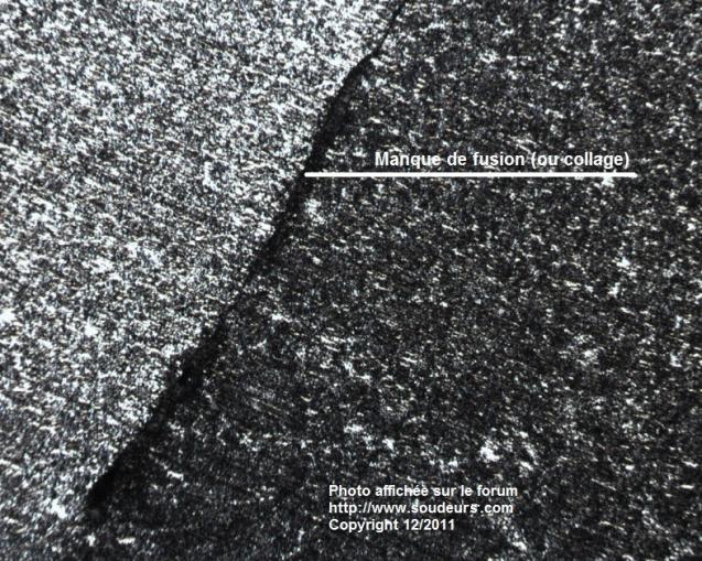 Micrographie - Vue grossie du manque de fusion ou collage: