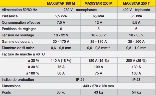 J'envisage d'acquérir un poste semi automatique Maxistar 180 ou 200 (CEMONT)