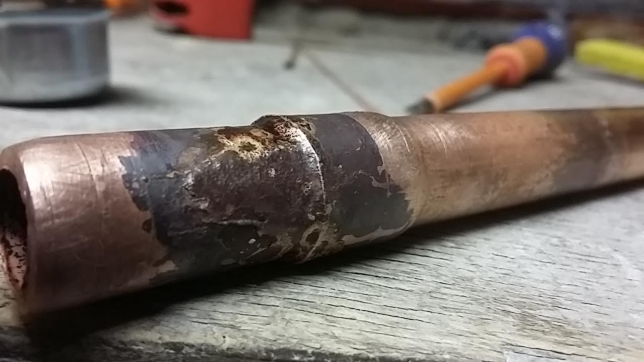 Le tube devient malléable (recuit), et il reste souvent du flux avec un pauvre aspect.