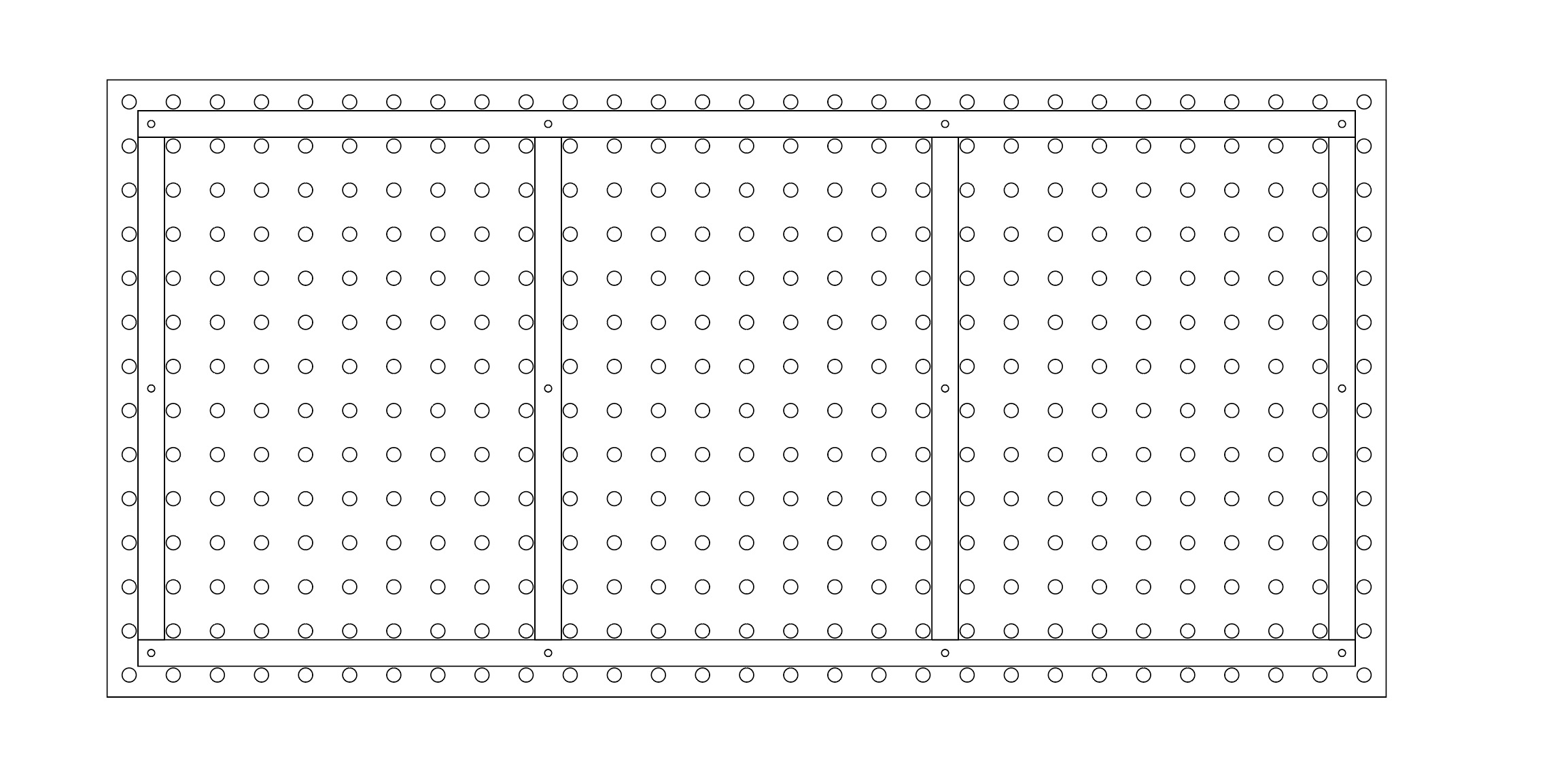 J'ai aussi des trous de 16mm mais en quinconce de 100mm.