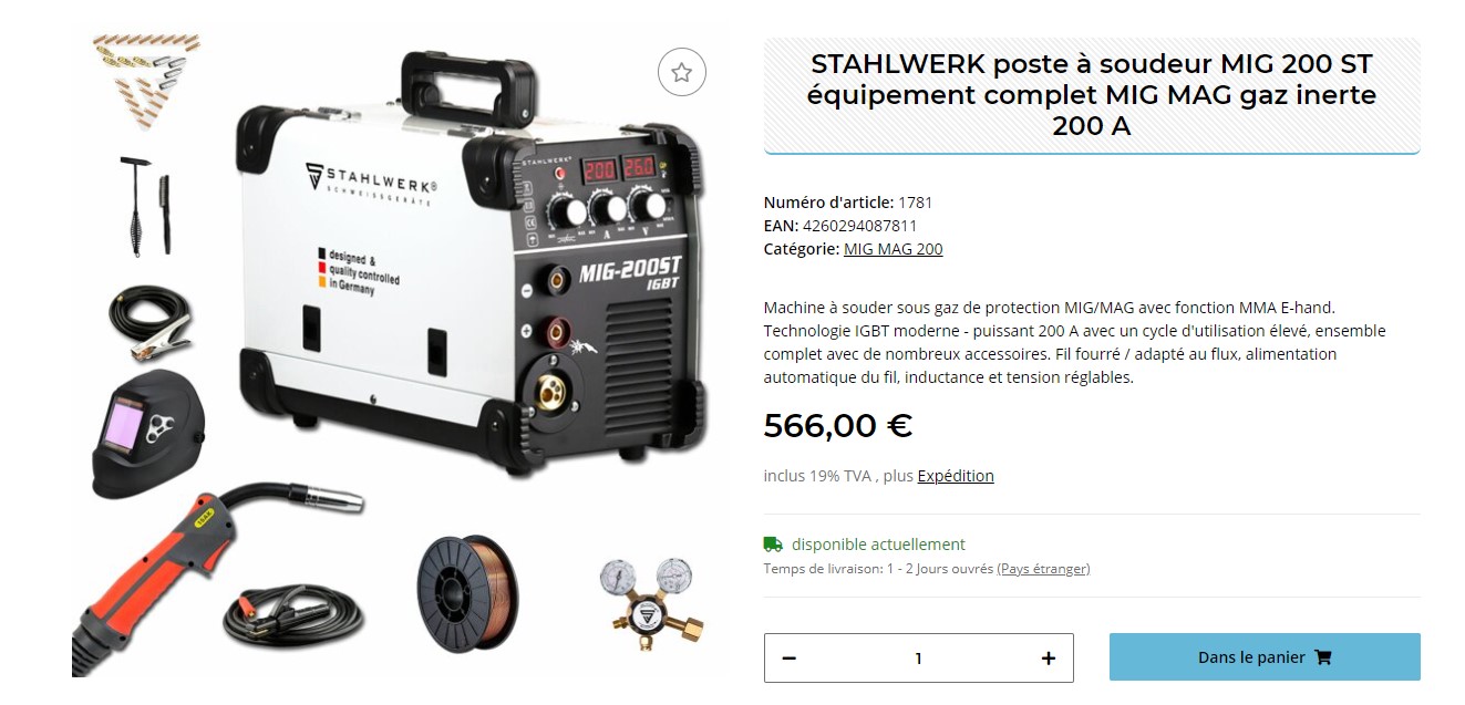 Il y avait un code promo de 10% en tapant SOUDEURS20 et si je peux me permettre, sa vaut le coup!
