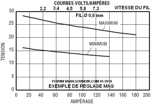 Courbes de sélection des paramètres de soudage du procédé MAG selon le diamètre de fil d'apport