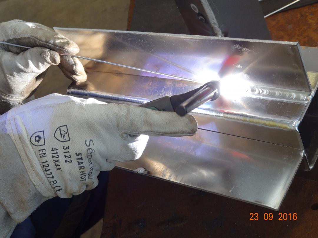 Sur la troisième photo, l'angle du bas en ép. 3 mm, j'ai demandé au stagiaire de godiller avec métal de 3,2 mm.