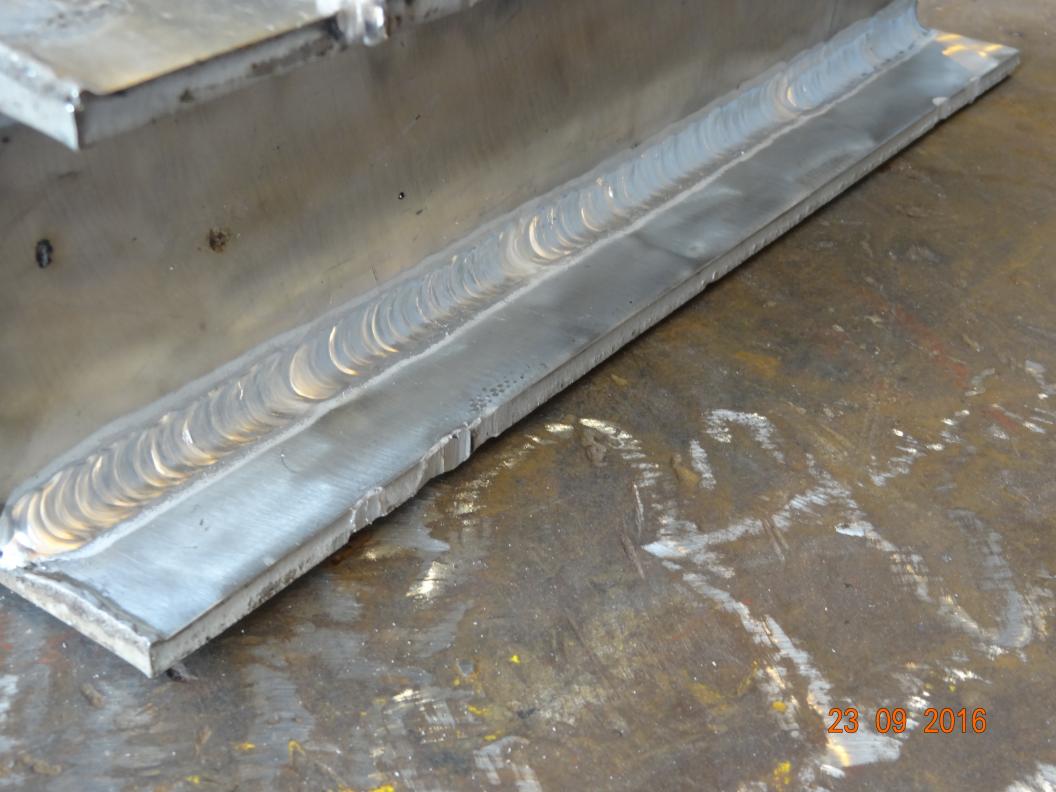 Enfin une jolie soudure d'angle TIG sur tôle alu épaisseur 3 mm, avec du fil de diamètre 4 mm, à la godille.