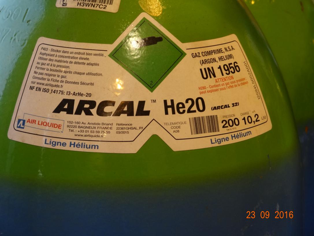 Je suis très étonné que Air Liquide n'est pas en stock son mélange de gaz binaire ARCAL 37 (70% d'hélium et 30% d'argon)