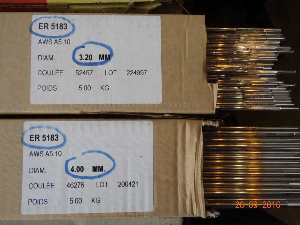 Pour le métal d'apport 141 alu j'utilise les 2,4 mm, 3,2mm et 4mm, si j'avais du 5 mm j'en aurais l'usage.