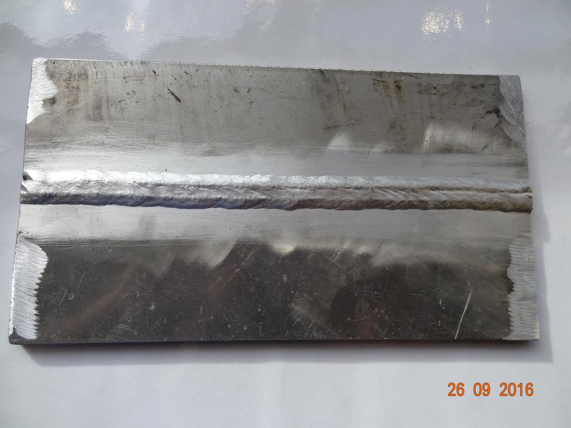 Exemple de passe de pénétration en TIG alu, en angle à plat, tôle épaisseur 10mm.