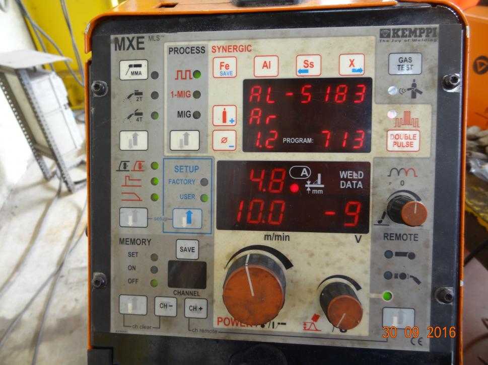 Moins 9 volts de tension par rapport au réglage usine, car kemppi ne proposait que de l'argon pur dans ses pré-réglages alors que je travaille avec du 20% hélium bien plus chaud.