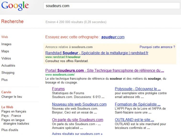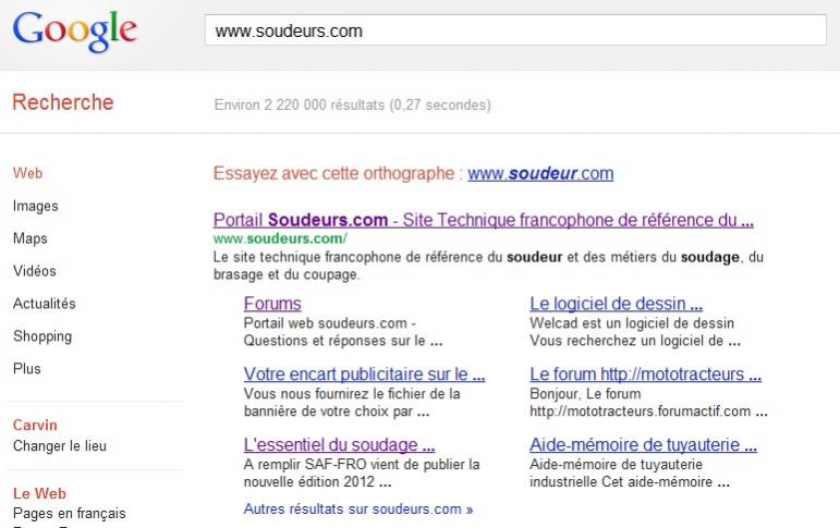 Bien entendu, l'ancien site Soudeur.com que nous avons abandonné est encore largement référencé.