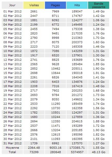 Pour comparer voici les statistiques de fréquentation de l'ancien site Soudeur.com en Mars 2012