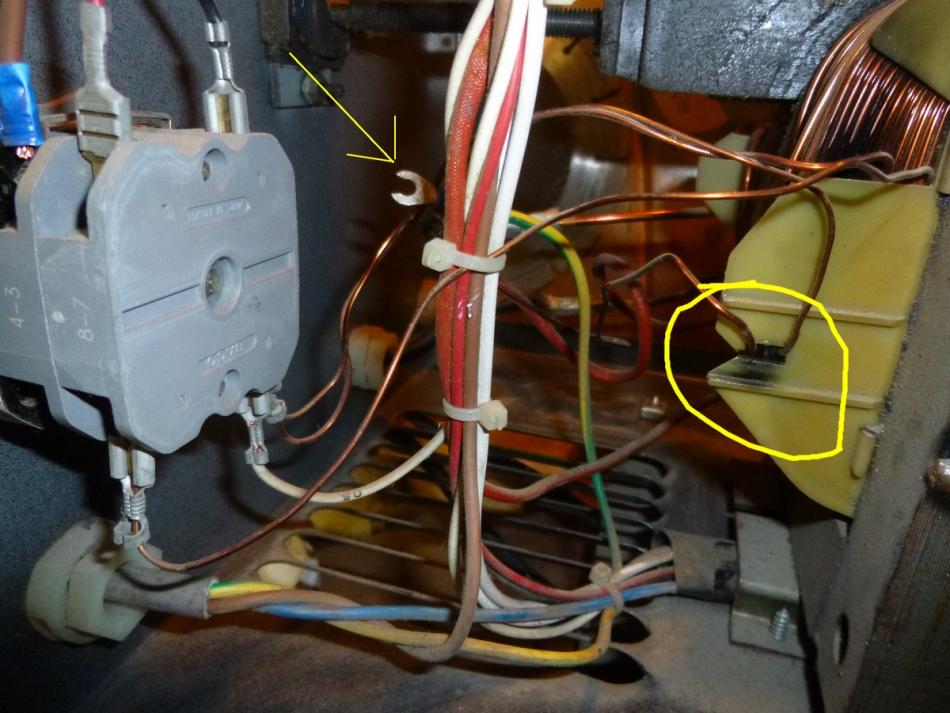 j'ai remis un écrou avec la cosse, et j'ai rebranché, en observant bien le bobinage... et VLAMM le disjoncteur de la prise saute en même temps que l'éclair jaillit du bobinage...
