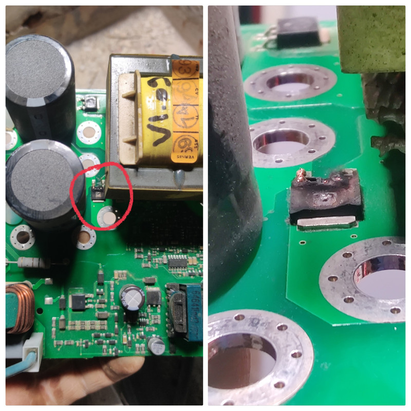 Si votre diode STTH5 a grillé, cela signifie qu’il y a un composant défectueux sur votre carte de puissance.