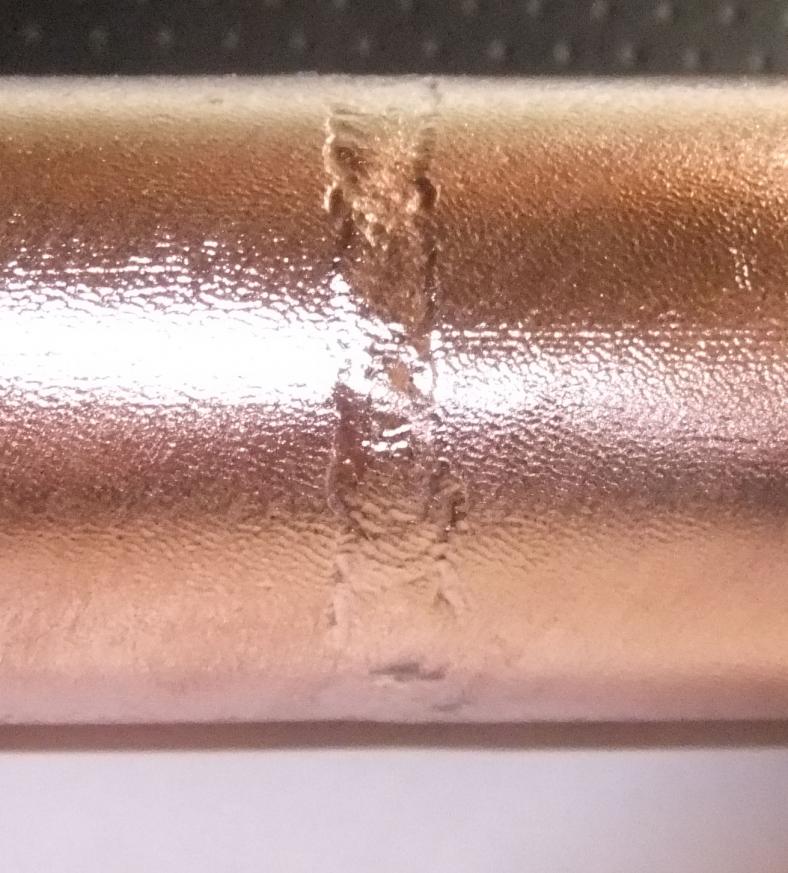 Pour l'intérieur, difficile de prendre une photo mais la fusion semble bien traverser, sans toutefois former d'aspérité interne. La résistance mécanique est celle du tube d'origine.