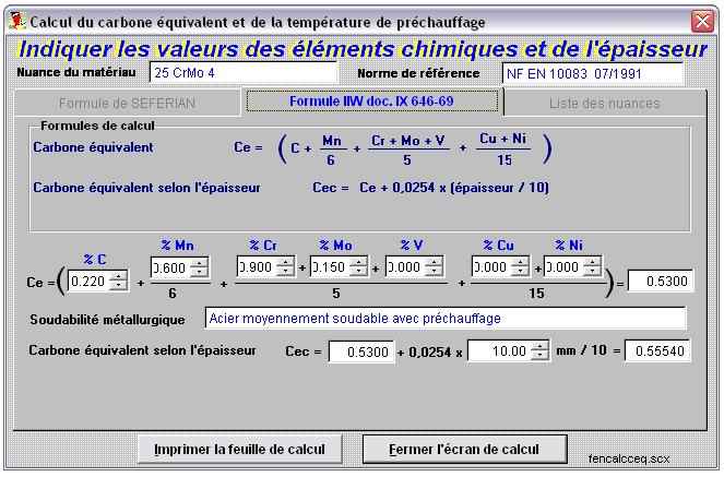 Nous décrivons ci-dessous la formule de l'International Institute of Welding (IIW) :
