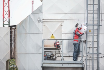 Photo 4 : Le TransPocket permet également de réaliser sans problème des lignes d’alimentation de 100 m et plus. Ainsi, l’utilisateur dispose d’un plus grand rayon d’action et d’une plus grande flexibilité pendant le soudage.