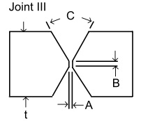 | 3/4 (19.1 mm) | III | 1/32-5/32 (0.8-4.0 mm) | 1/32-5/32 (0.8-4.0 mm) | 60°-75° | 1.20 (1.79) |