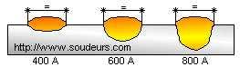 L'intensité de soudage a une influence importante sur le taux de dilution.