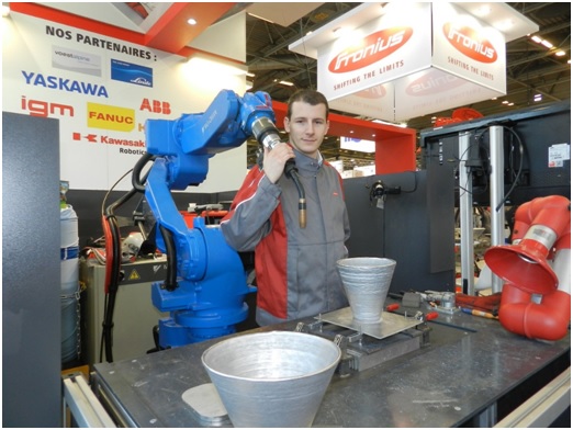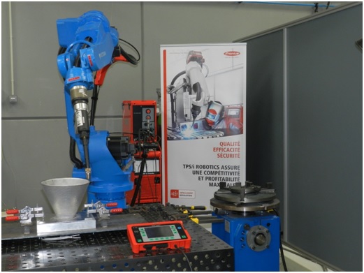 On a recours à la technologie WAAM (Wire plus Arc Additive Welding) : on utilise un arc électrique pour faire fondre un fil métallique afin d’obtenir le procédé de fabrication additive. Pour cela, le choix s’est porté sur un générateur MIG MAG CMT monté sur un robot. Pour la première fois en France, nous avons mis en fonctionnement sur le salon industrie Paris en avril 2016 un générateur CMT sur Robot Yaskawa. La pièce à fabriquer était un vase en alu. Il a fallu environ deux heures pour réaliser une telle pièce. Sans cette technologie, à la manière traditionnelle, cela aurait pris des heures et généré beaucoup de rebuts. Cela a attiré de nombreux visiteurs et suscité un grand intérêt. Nous avons de nombreuses demandes là-dessus !
