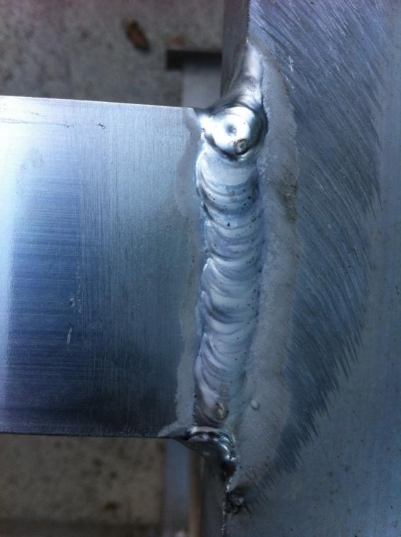 bon je vais y aller de ma version. Sur du tube carré de 2 ou 3 mm en alu, comme d'un côté vous n'êtes pas de fait en bord à bord car sur l'arête du tube, cela vous donne une épaisseur relative bien plus importante, l'intensité nécessaire serait à mon avis plus vers les 100A que les 45A évoqué. D'après ce que l'on en voit sur la photo le bout de votre tungstène semble être au même niveau que le bord de la buse. It is no good, vous avez forcément un arc trop long, il faut la sortir de 4 à 5 mm la tungstène, lors du soudage elle doit être à 1 ou 2mm maximum du bain de fusion. Une buse crasseuse ce n'est pas trop bon, grattez la, quand à décaper son métal d'apport, c'est préconisé mais un peu charrier Et je sais de quoi je parle j'ai fait pas mal d'éprouvettes radiographiés et me suis fait des km de soudure alu. Si on avait décapé , passé au grattoir les baguettes, notre boite aurait fait faillite. Idem pour les abrasifs il suffit de passer ensuite un coup de lime sur les parties meulées.