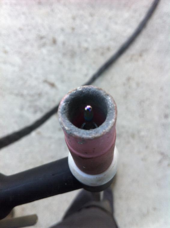 mais j'ai essayé aussi avec un tungstene neuf vert 2.4 affuté en pointe mêmes résultats