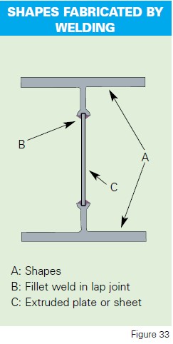 Aluminium can be used to fabricate large shapes by the automatic welding of flanges of shapes and sheet (figure 33).