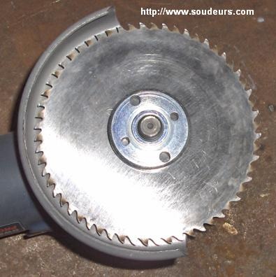 Voici la disqueuse à dents que nous utilisons pour assurer les reprises envers sur nos joints soudés en alliage d'aluminium.