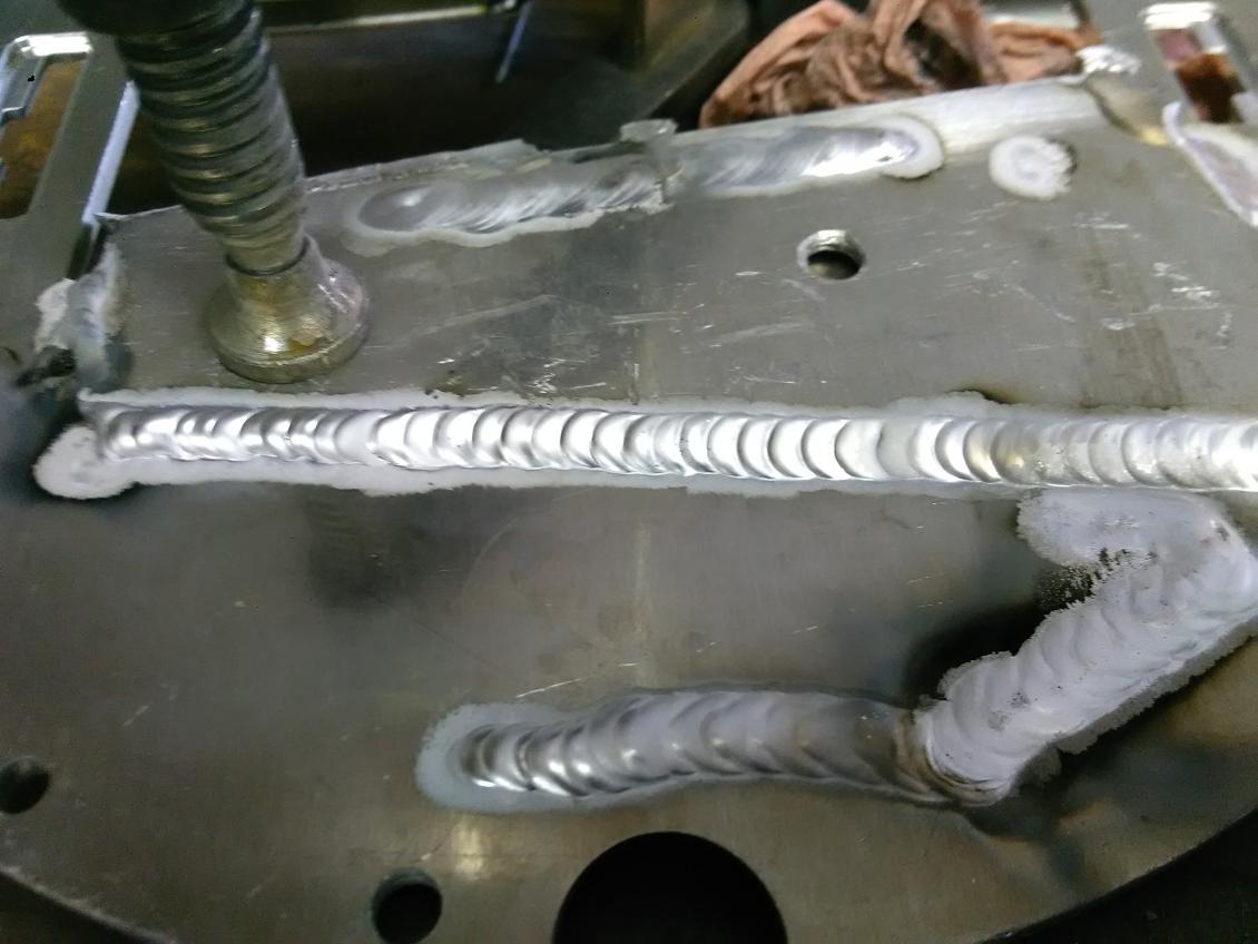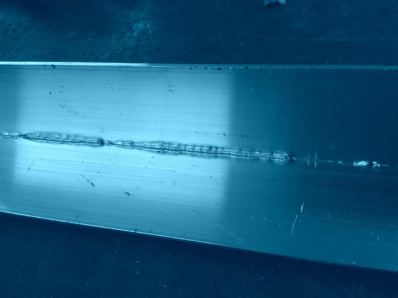 Les fissures sont très courantes sur l'alu, mais c'est surtout pour les bord à bord, pour les éviter il faut faire un talon, c'est à dire démarrer à 4 ou 5 cm du bout et aller vers l'extrémité, puis repartir dans l'autre sens depuis le départ précédent