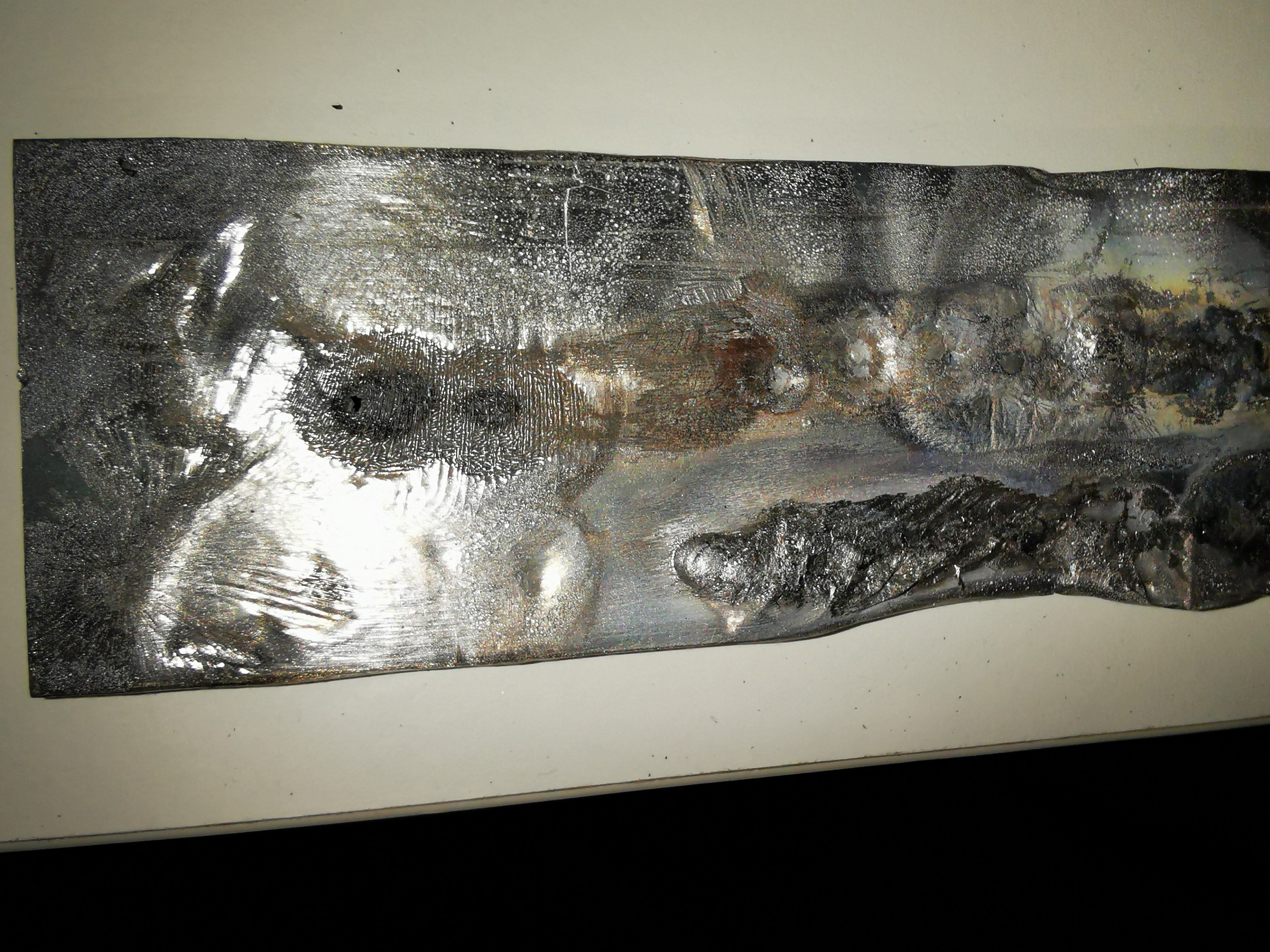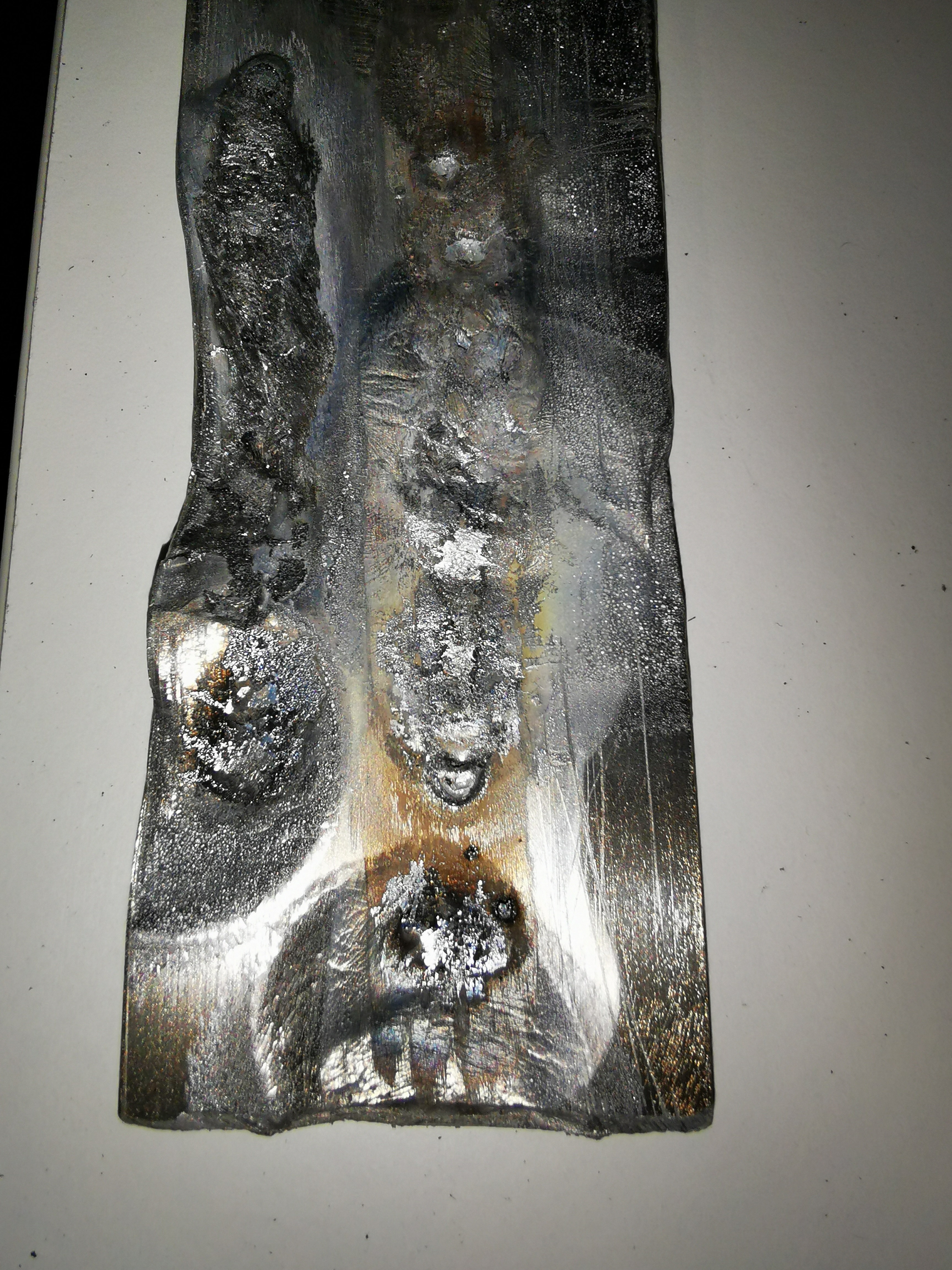 Notez que pour le métal d'apport, je n'ai pas réussi à l'amalgamer avec le plat car dès que je l'approchais de l'arc il se retractais sur lui même en fesant une boule.. :/